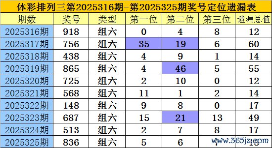 开奖回来:陈列三第2025325期奖号为:836,诸君号码遗漏值分手为5、6、7,遗漏总值为18。